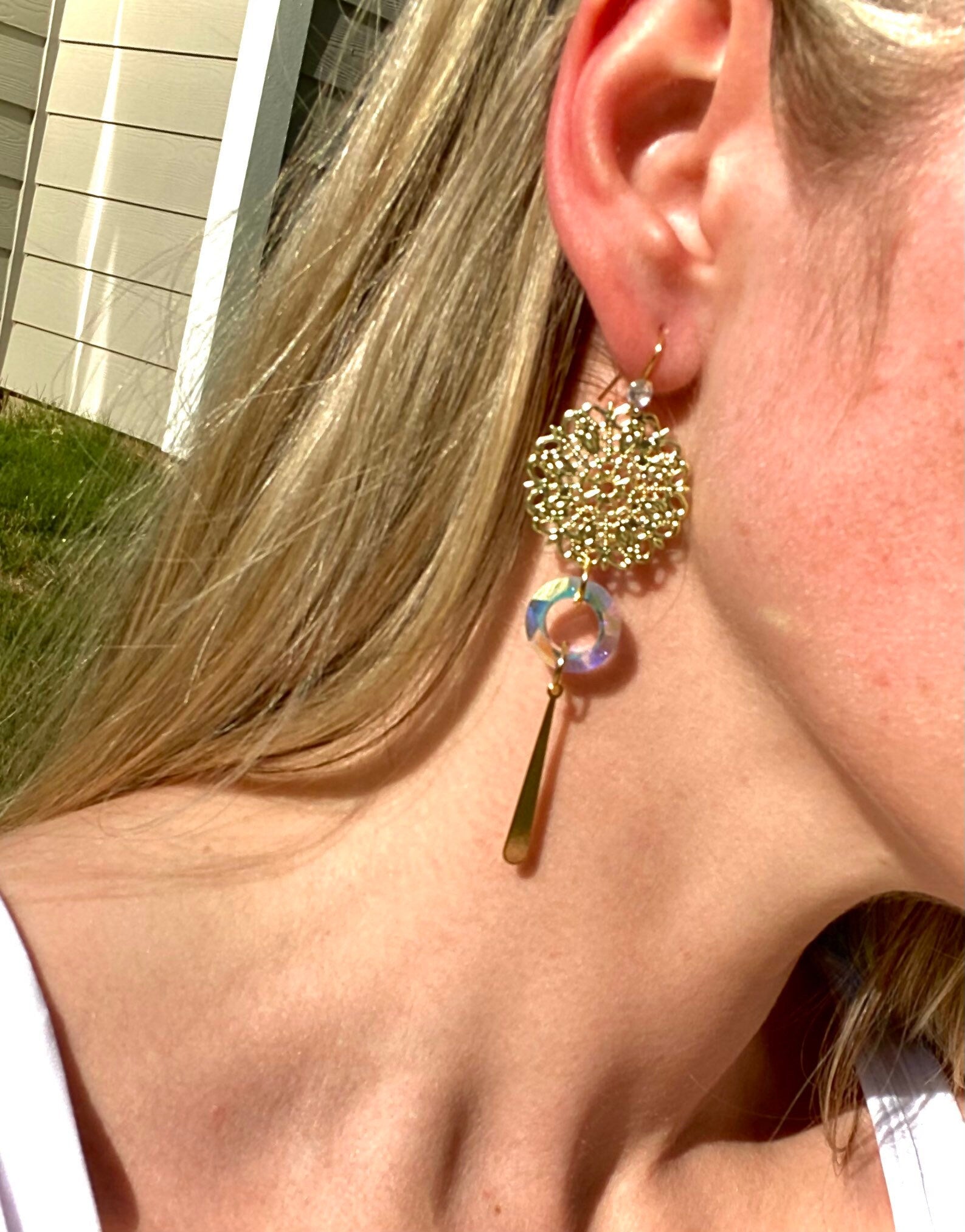 Elegant Dangle Drop Earrings | Wedding Earrings | Gold Detailed Design | Handmade Earrings | Crystal Dangle Earrings | Bridesmaid Earrings |